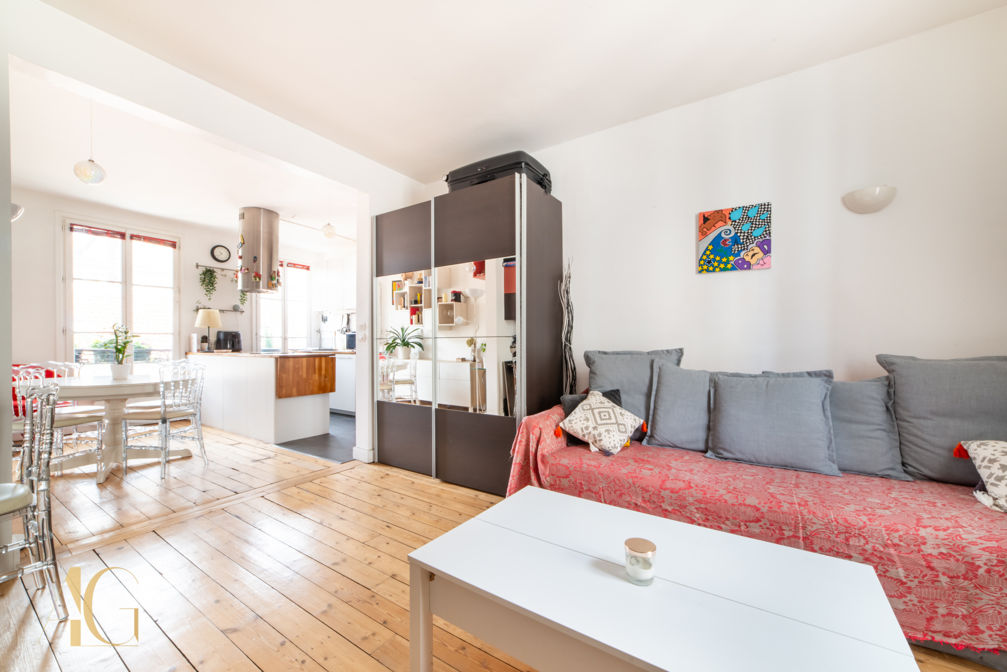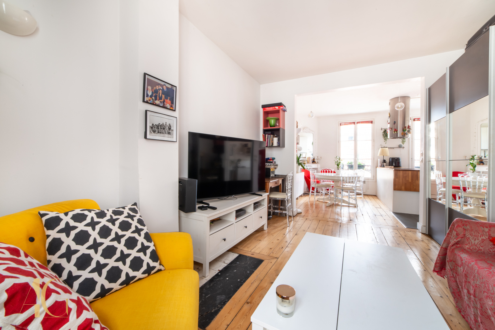 Clichy (92110)Au cœur de Clichy, à 50 m de la mairie, dans une rue calme, au 2e étage d’un petit immeuble ancien, un appartement 2 pièces calme et lumineux de 46 m². Il se compose d’une entrée, d’un bel espace de vie (séjour, salle à manger, cuisine américaine aménagée et équipée), d’une chambre, d’une salle d’eau et de WC.
